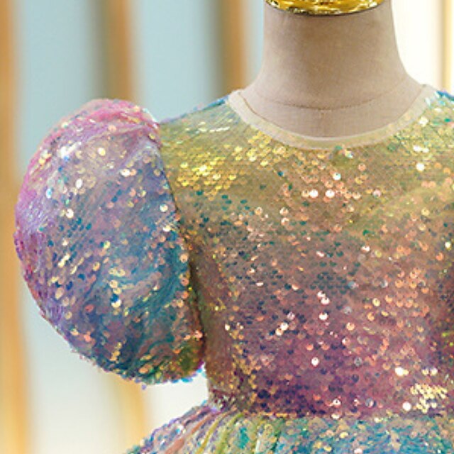 Gender: Girls', Age Group: Kids, Style: Cute, Princess, Occasion: Wedding, Party, Kids Apparel: Dress, Fabric: Polyester, Pattern: colour, Sleeve Length: Short Sleeve, Design: Mesh, Ruched, Sequins, Age: 3-12 Years, Season: Summer, Spring, Look After Me: Hand wash, Elasticity: Micro-elastic, Dresses Type: A Line Dress, Tulle Dress, Fit Type: Regular Fit, Dress Length (cm): Maxi,
