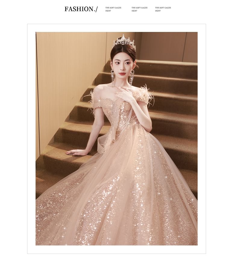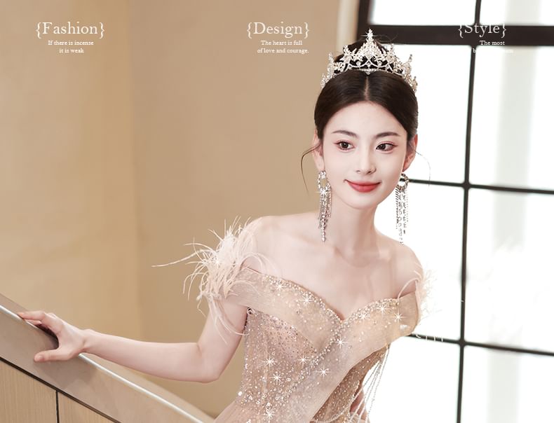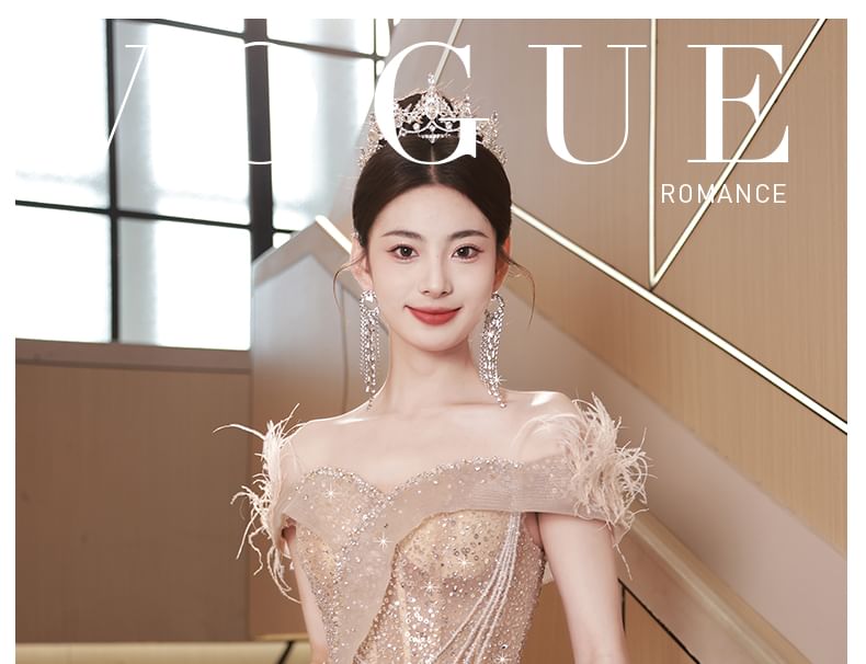 Sleeveless Off-Shoulder Fringed Sequin Mesh A-Line Evening Gown