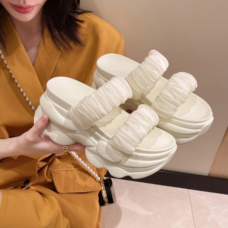 Plain Ruched Strap Platform Slide Sandals