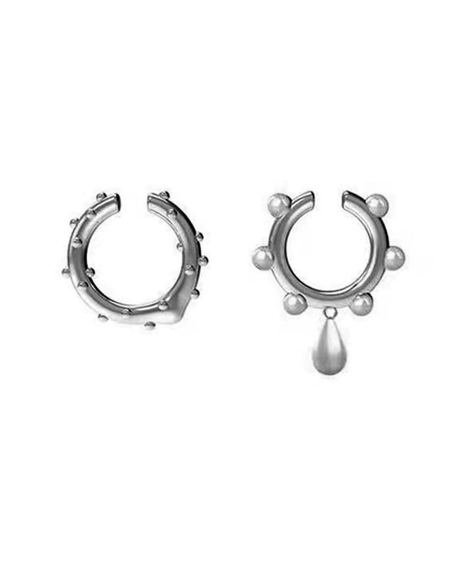 Water Pearl Unique Hoop Drop Earrings Copper Asymmetrical Silk