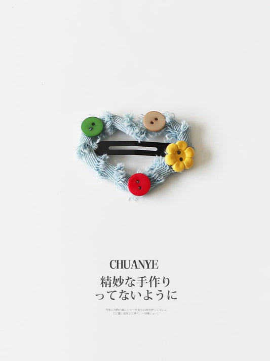 Floral Butterfly Fringed Denim Heart Hair Clip