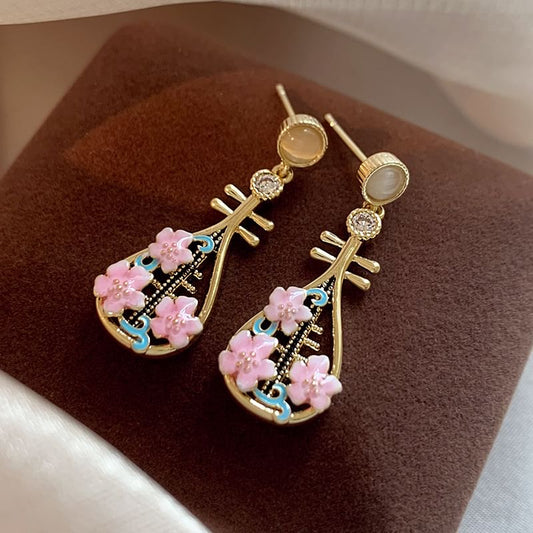 Floral Mesh Faux Pearl Alloy Drop Earring