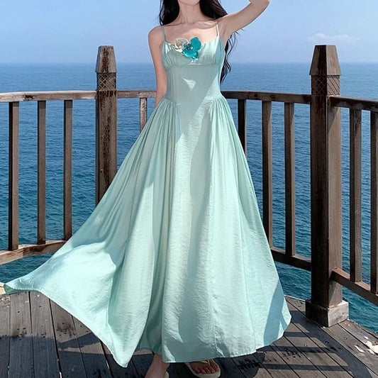 Floral Maxi Strap Spaghetti Accent A-Line Dress