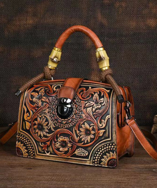 Vintage Rindsleder handgemachte Prägung Tote Handtasche HJ1031