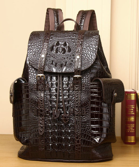 Handgefertigter schwarzer Rucksack aus Kalbsleder mit großem Fassungsvermögen ZX1002