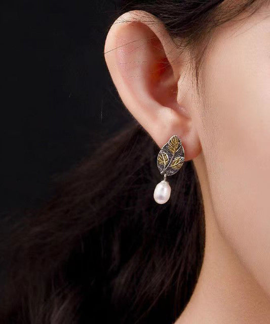 Vintage Colorblock Sterling Silber Perlen Blatt Tropfen Ohrringe PO042