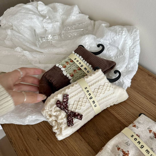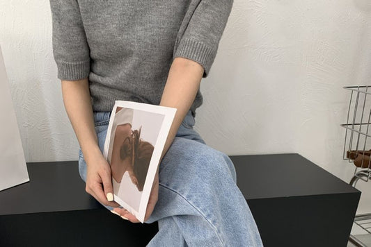 Long-Sleeve V-Neck Plain Lace Panel Button Accent Knit Top