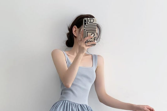 Sleeveless Square Neck Plain Knit Panel Midi A-Line Dress