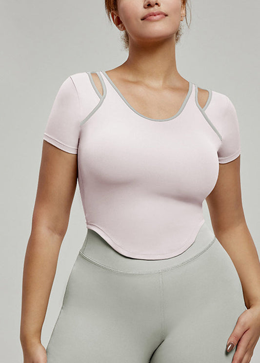 O-Neck Pink Tops Short Yoga Casual Sleeve