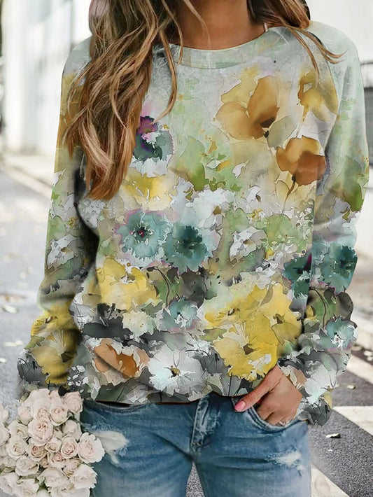 Lockerer Pullover mit festlichen Blättern und Blumen GA53