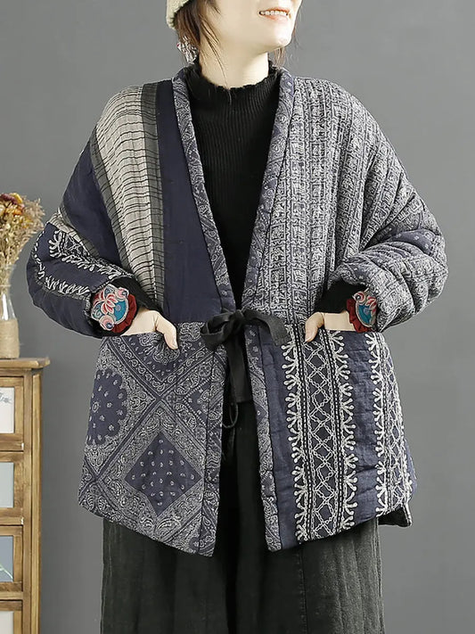 Damen Vintage Gespleißter warmer wattierter Mantel