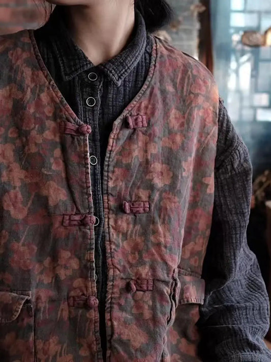 Damen Weste mit V-Ausschnitt und Blumenmuster