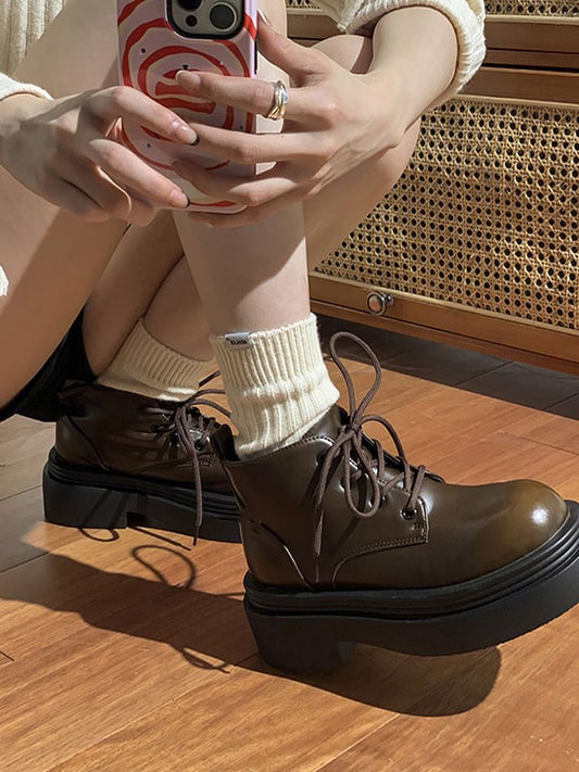Green Loafer Shoes Chunky Faux Leather Stylish Splicing QK028