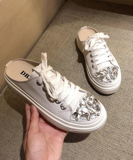 Slide Sandals New Pointed Bead French 2025 Toe Decorated Golden