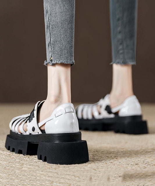 New Platform 2025 Out Leopard Sandals Hollow Design Black Roman