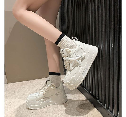 Lace-Up Faux Lace Panel Pattered Sneakers Pearl Platform