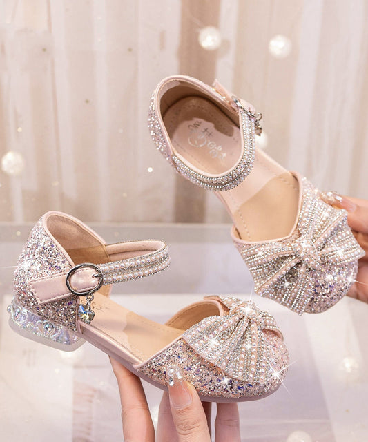 Kids Fashion Princess Shoes Girls Bow Zircon Beige Buckle Strap