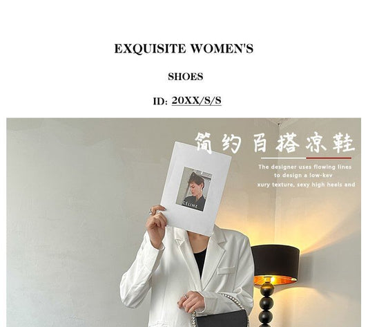 Sandals Loop Chunky Slingback Plain Toe Accent Metal Heel