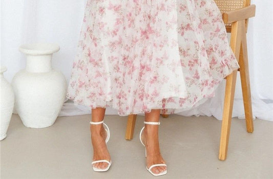 Ärmelloses Maxikleid mit V-Ausschnitt, Blumendruck und überkreuzten Trägern OP38