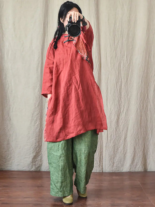 Damen Geblümtes Ramie-Kleid mit gespleißtem Saum