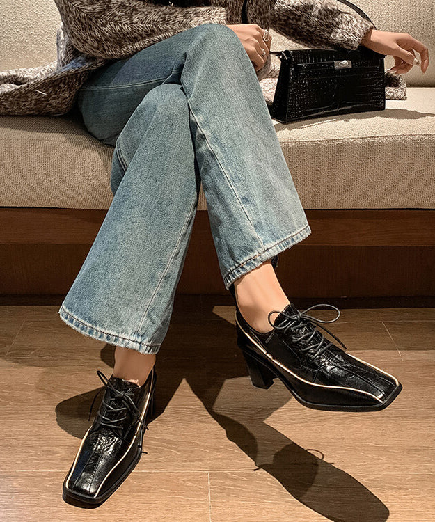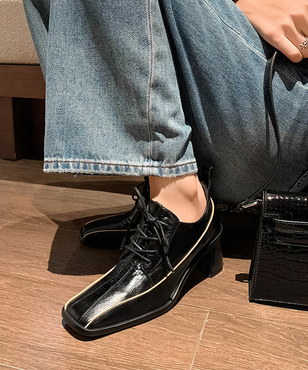 2025 Chic Splicing Lace Up Chunky Heel Mulberry Cowhide Leather YR040