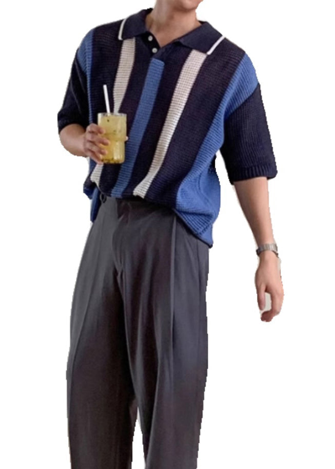 Casual Apricot Striped Hollow Out Knit Mens Polo Shirt Designer Summer QH006