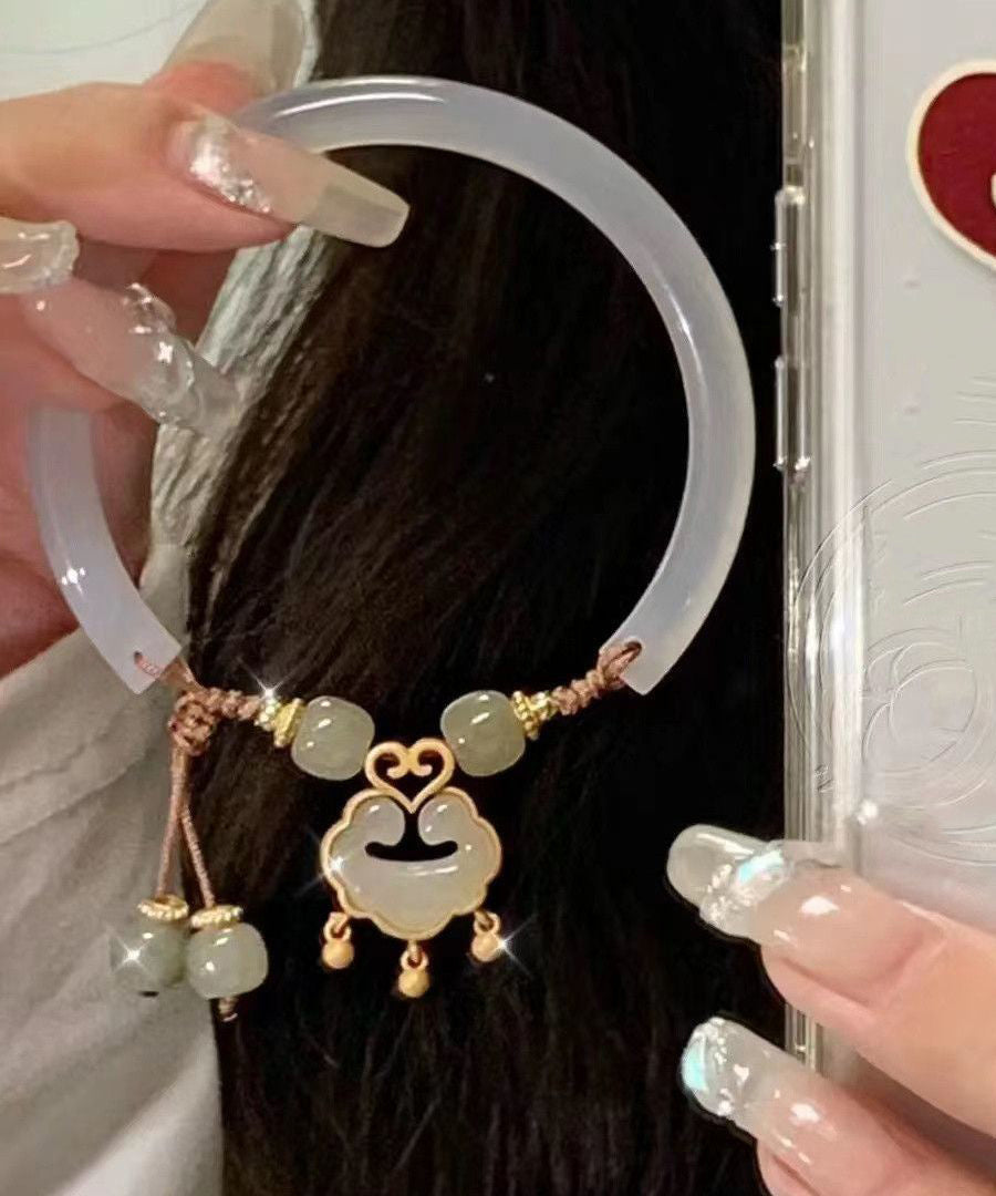 Elevate your style with the luxurious Chic White Sterling Silver Overgild Jade Safe Lock Tassel Bangle QJ025. This exquisite piece features intricate detailing and a classic design that exudes sophistication and exclusivity. Crafted from the finest materials, this bangle is the epitome of elegance and taste. Elevate your look and make a statement of refined beauty with this stunning accessory.