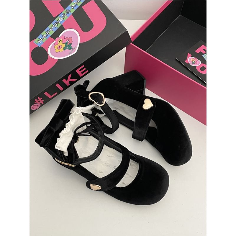Chunky Heel Ankle Strap Bow Accent Heart Buckled Mary Jane Pumps