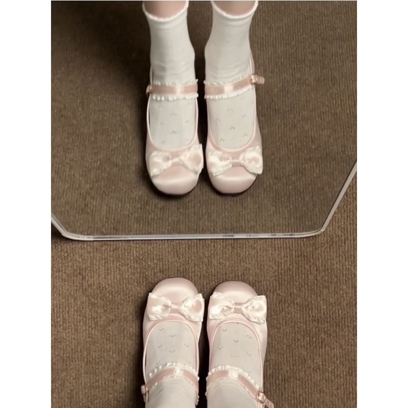 Chunky Heel Bow Accent Frill Trim Mary Jane Pumps