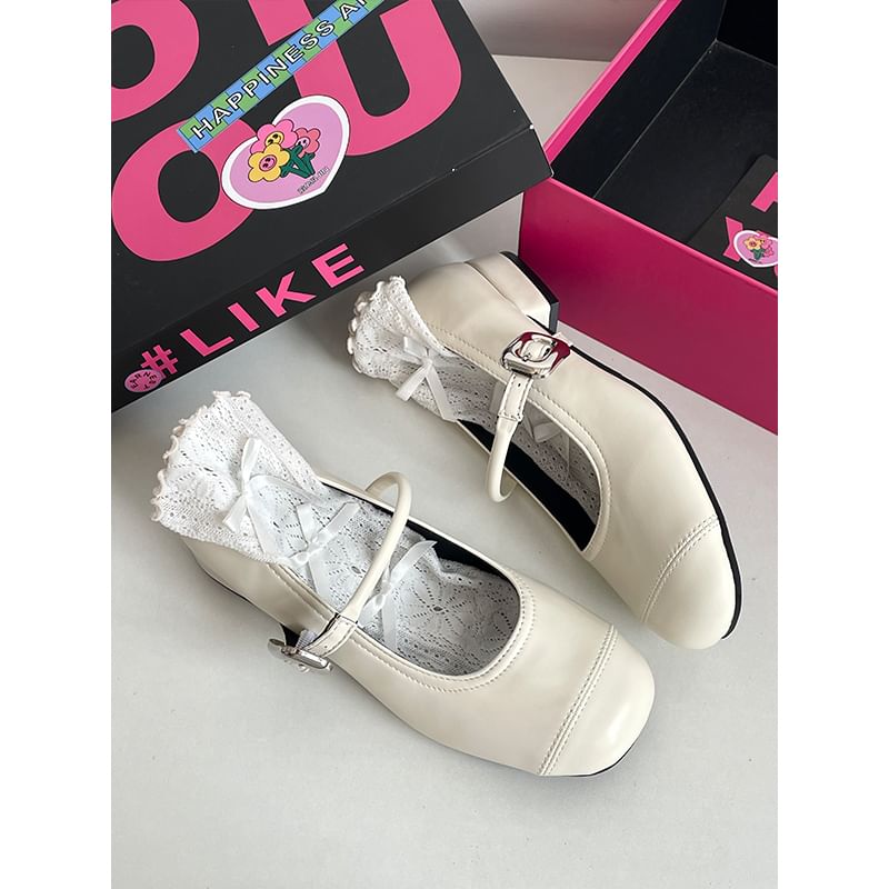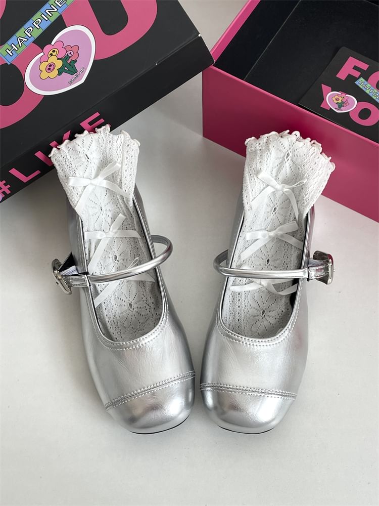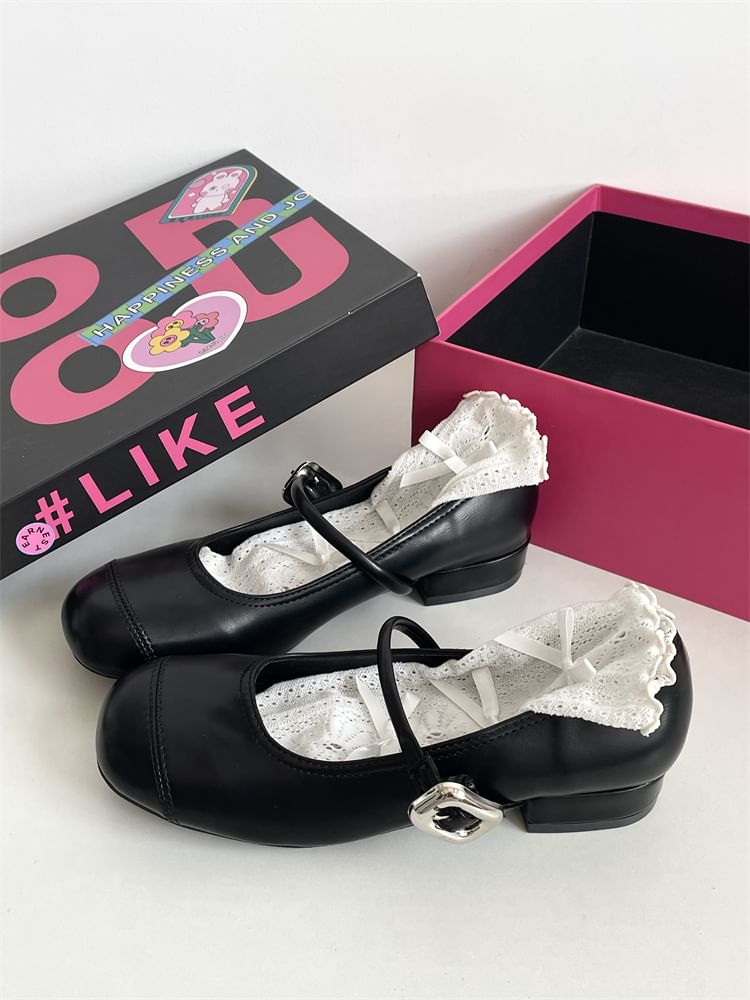 Chunky Heel Plain Buckled Faux Leather Mary Jane Pumps