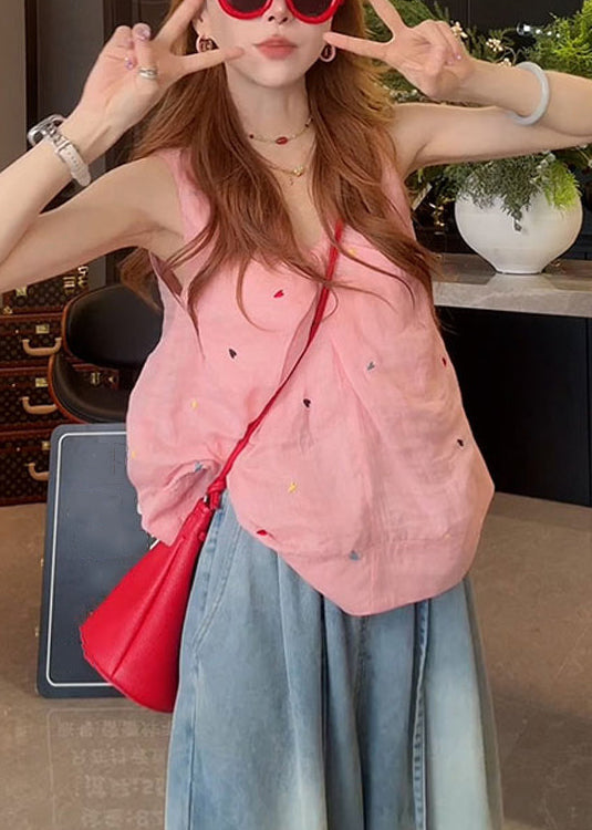 New White V Neck Print Cotton Tank Sleeveless