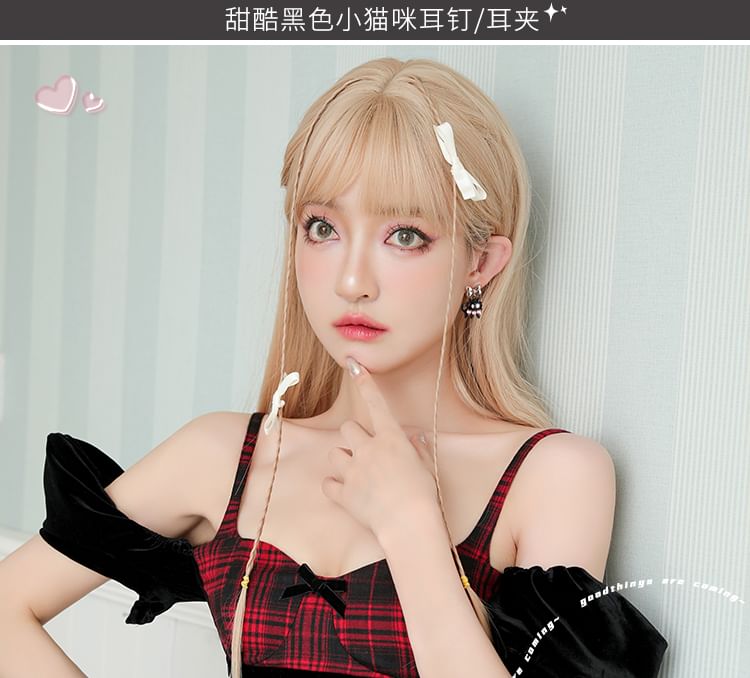 / Cuff Stud Cat Block Sterling Ear Silver Color Earring