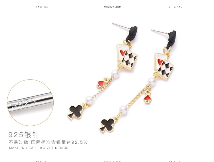 Earring Print Cuff Ear / Sterling Stud Silver Card Poker