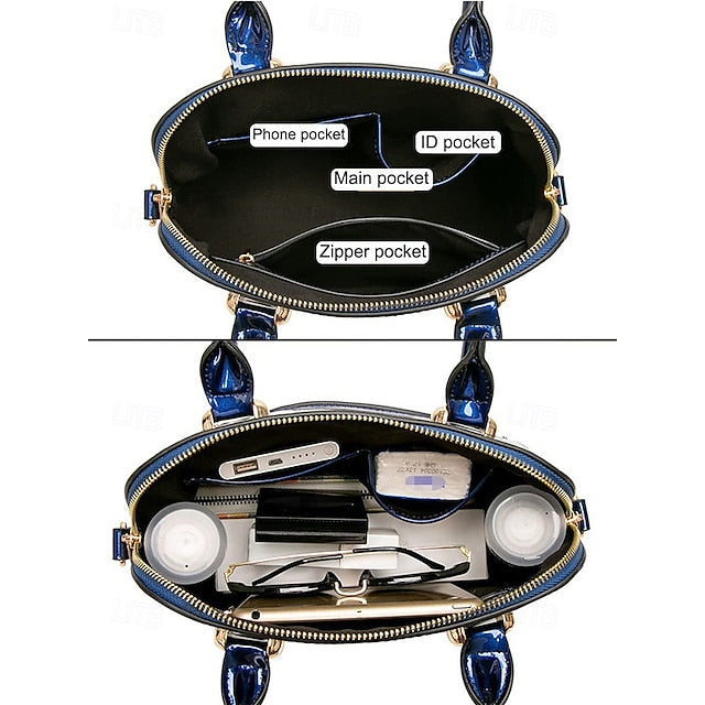 Elegant Tote - Leather Shiny Bag Women's Green Patent