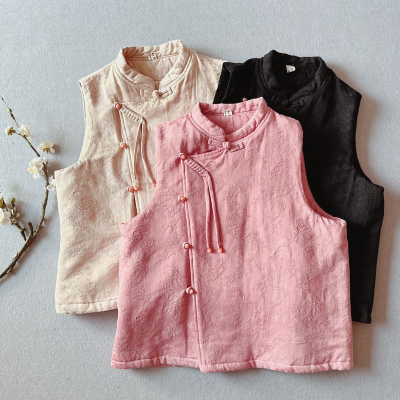 Floral Embroidered Frog Buttoned Hanfu Vest