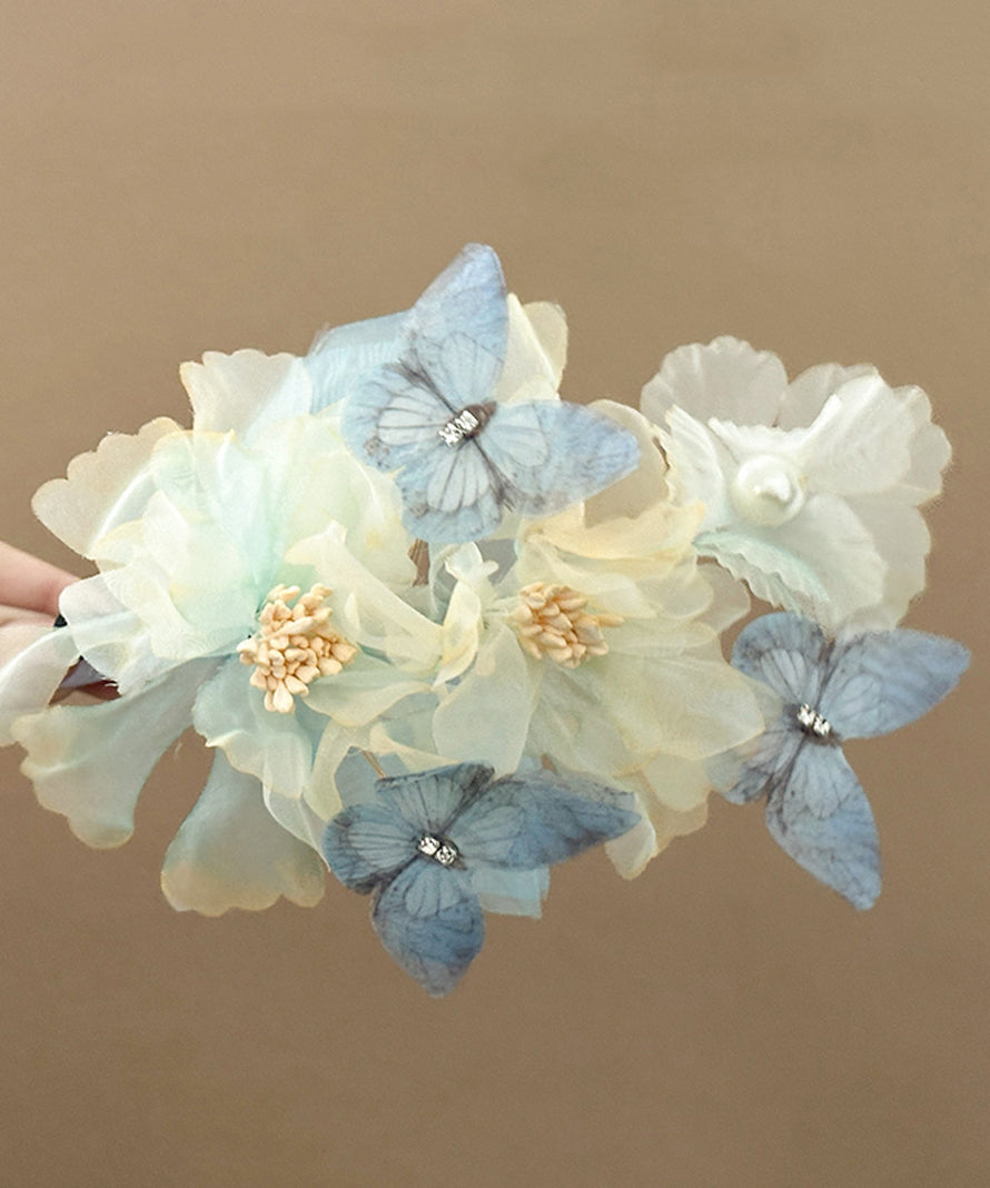 Retro Multicolor Tulle Butterfly Floral Pearl Hairpin