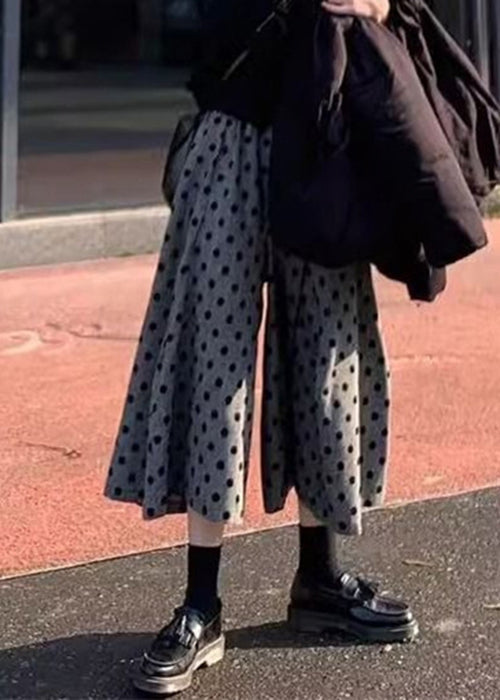 New Grey Dot Elastic Waist Cotton Wide Leg Pants Summer