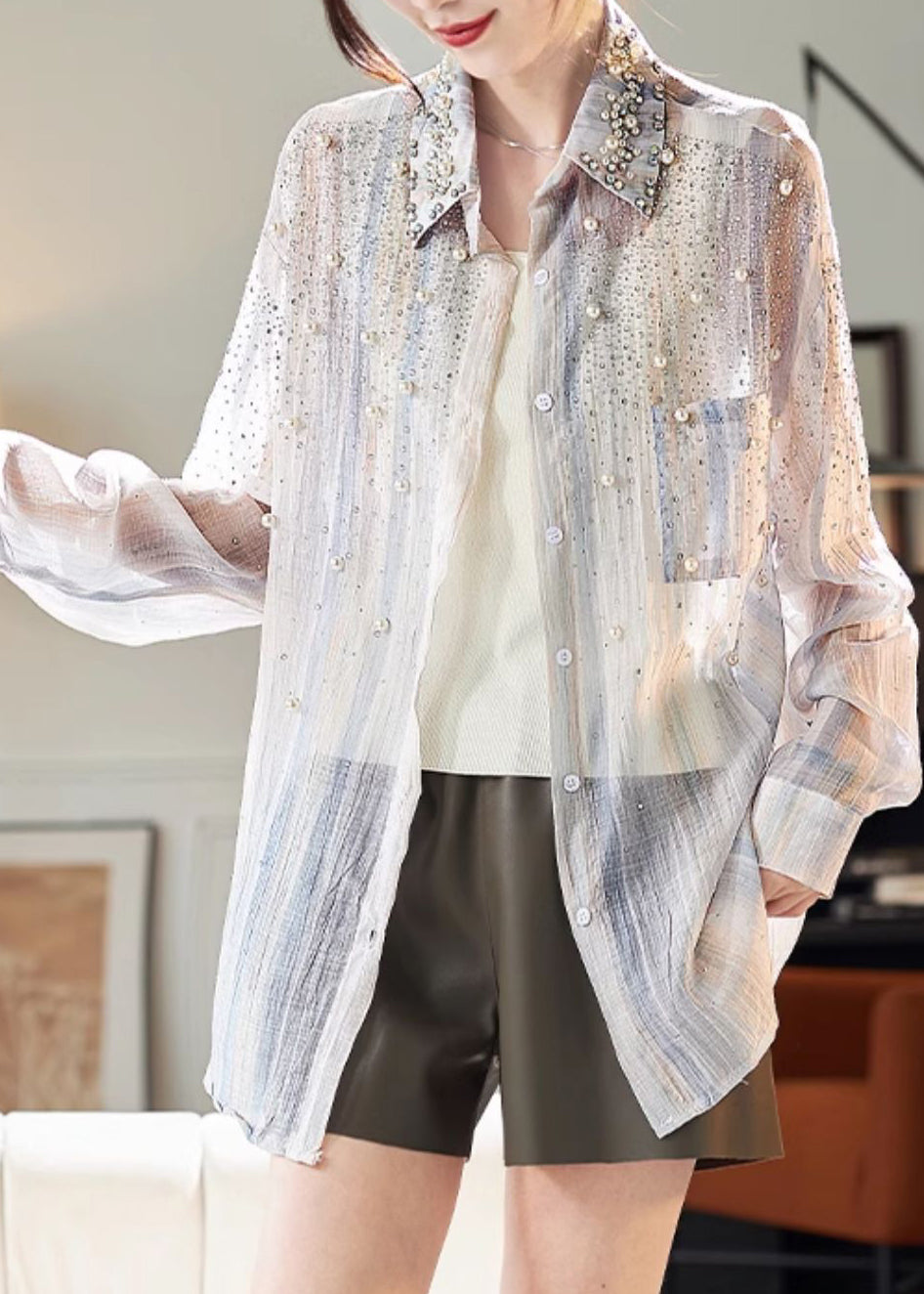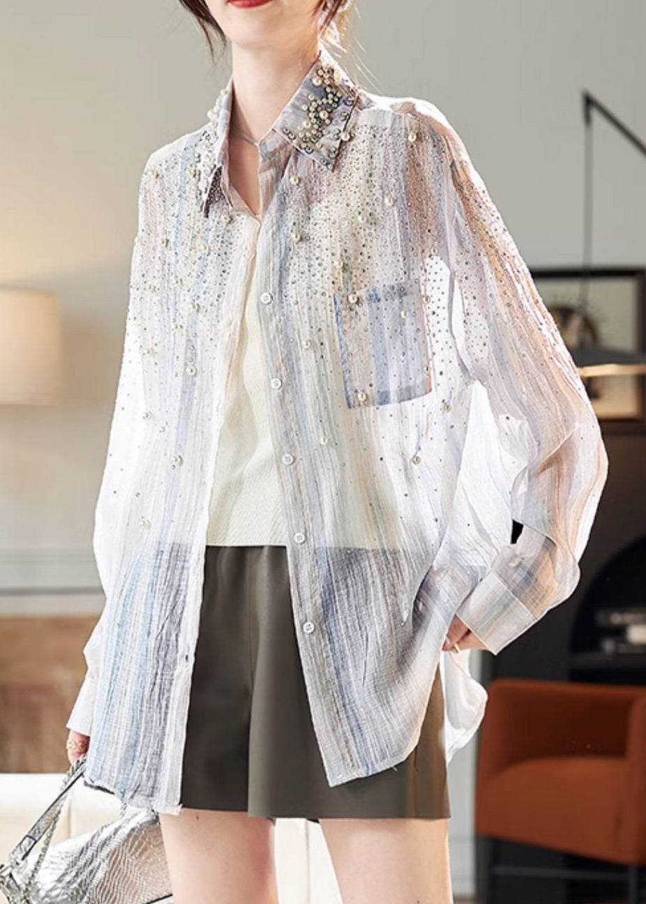 Handmade Blue Peter Pan Collar Nail Bead Shirt Fall