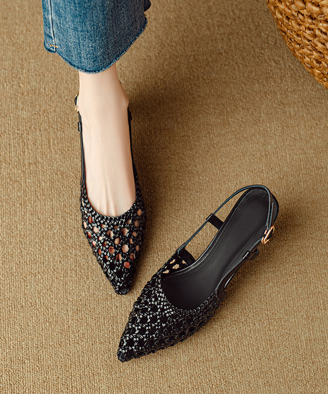 Classy Beige Sandals Splicing Kitten Hollow Out Sandals Pointed Toe