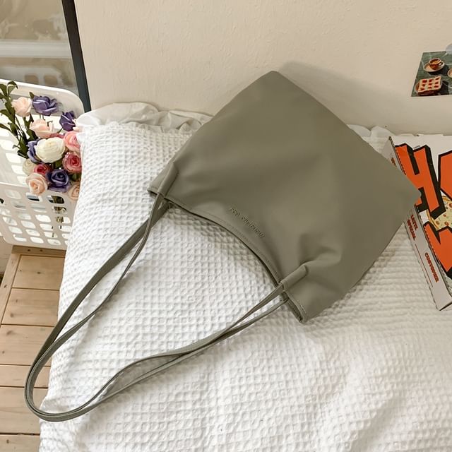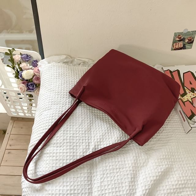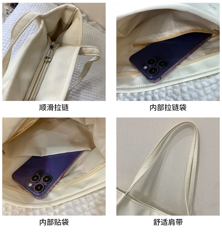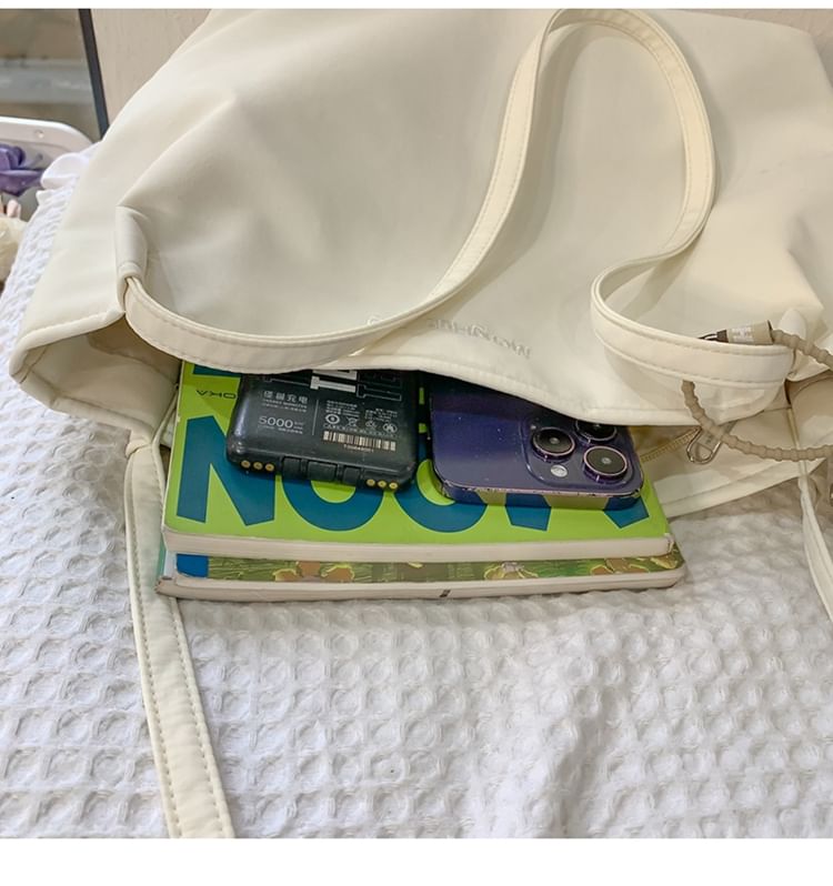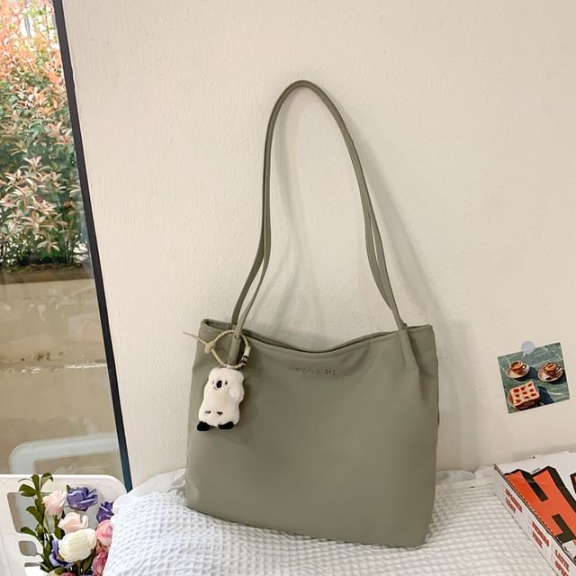 Lettering Embroidered Nylon Tote Bag / Bag Charm / Set