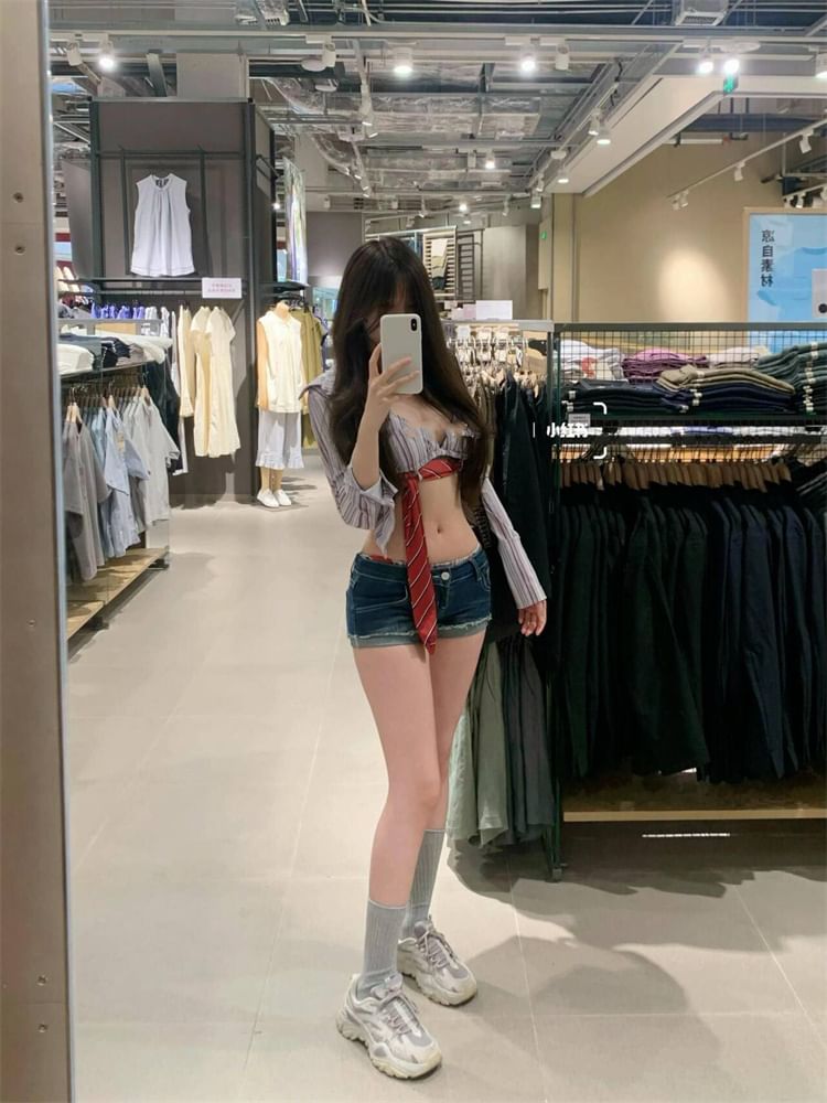 Low Rise Washed Frayed Denim Hot Pants