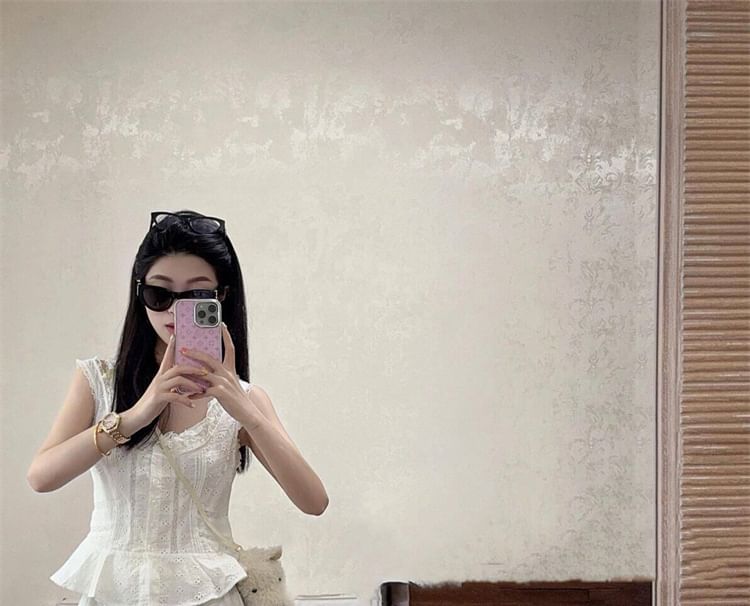 Mid Waist Plain Lace Panel Wide Leg Pants