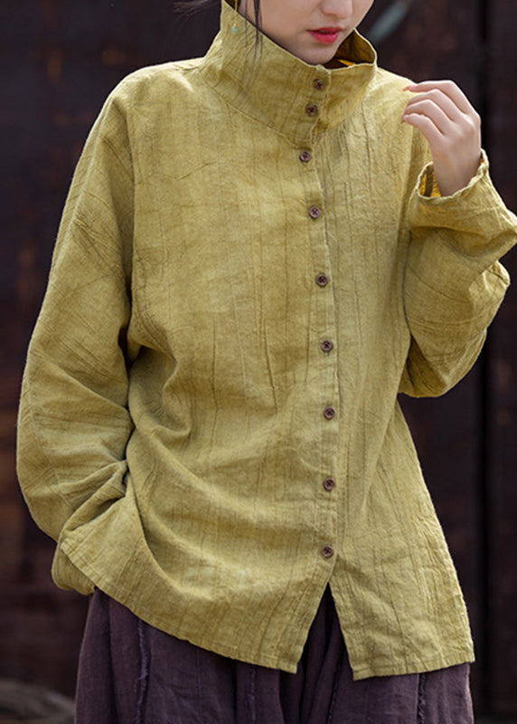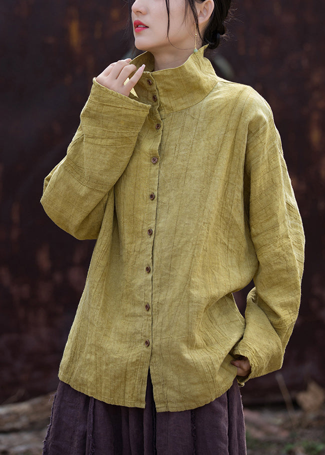 Luxuriate in the bold, artistic charm of our lavish, autumnal Original Yellow Stand Collar Patchwork Tie Dye Shirts. Embrace the sophisticated allure of this exclusive piece, meticulously crafted with a stand collar and unique patchwork design. Elevate your wardrobe with this luxurious addition, perfect for the season's fashion-forward looks.