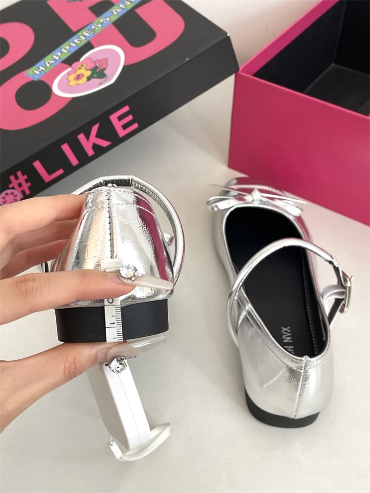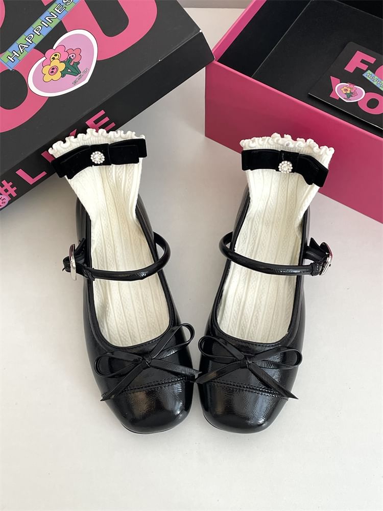 Plain Bow Accent Faux Leather Mary Jane Flats
