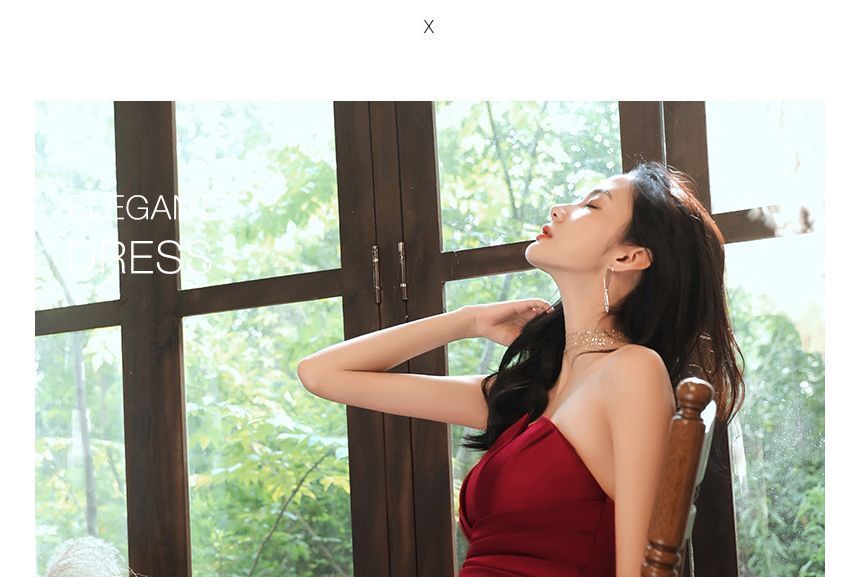 Plain Ruched Satin Panel Mesh A-Line Tube Evening Gown