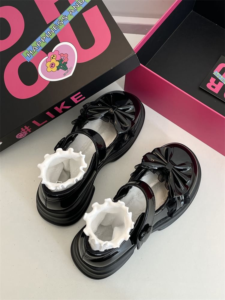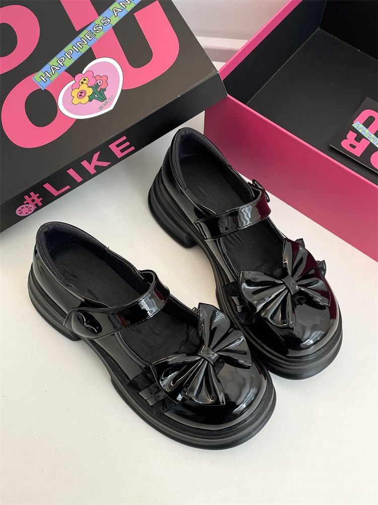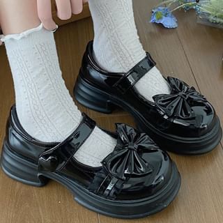 Ruffle Bow Platform Chunky Heel Mary Jane Pumps