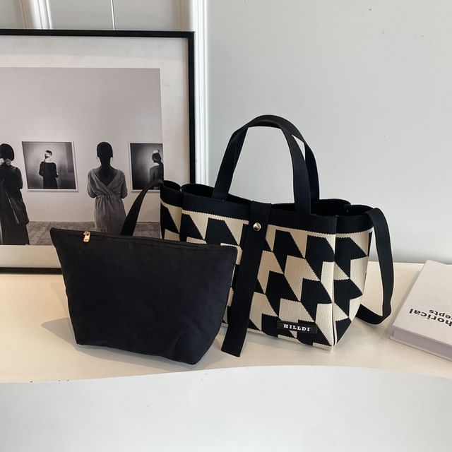 Set: Top Handle Patterned Crossbody Bag + Pouch