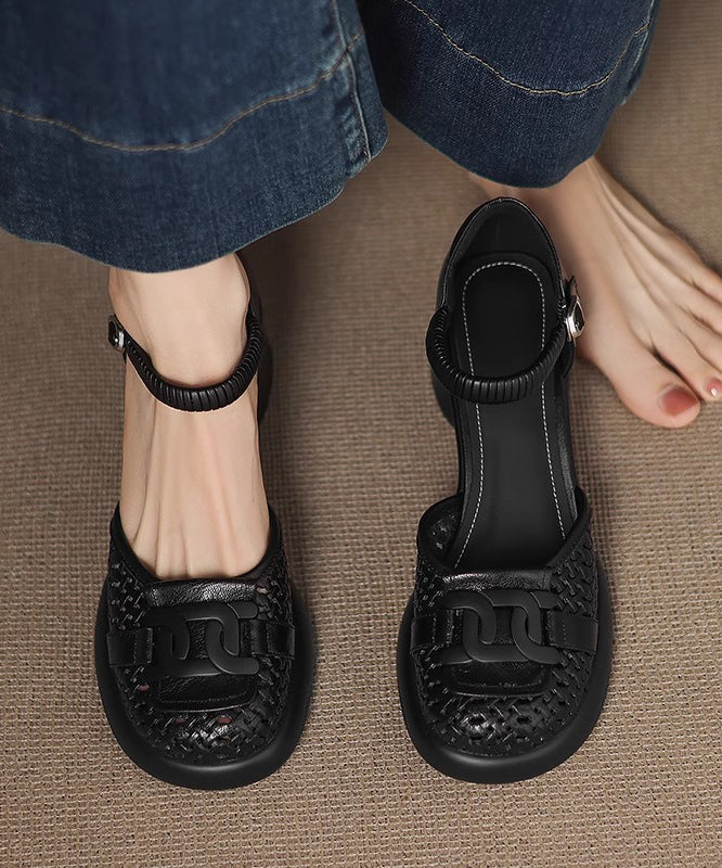 Beige Sheepskin Buckle Strap Splicing Chunky Heel Sandals