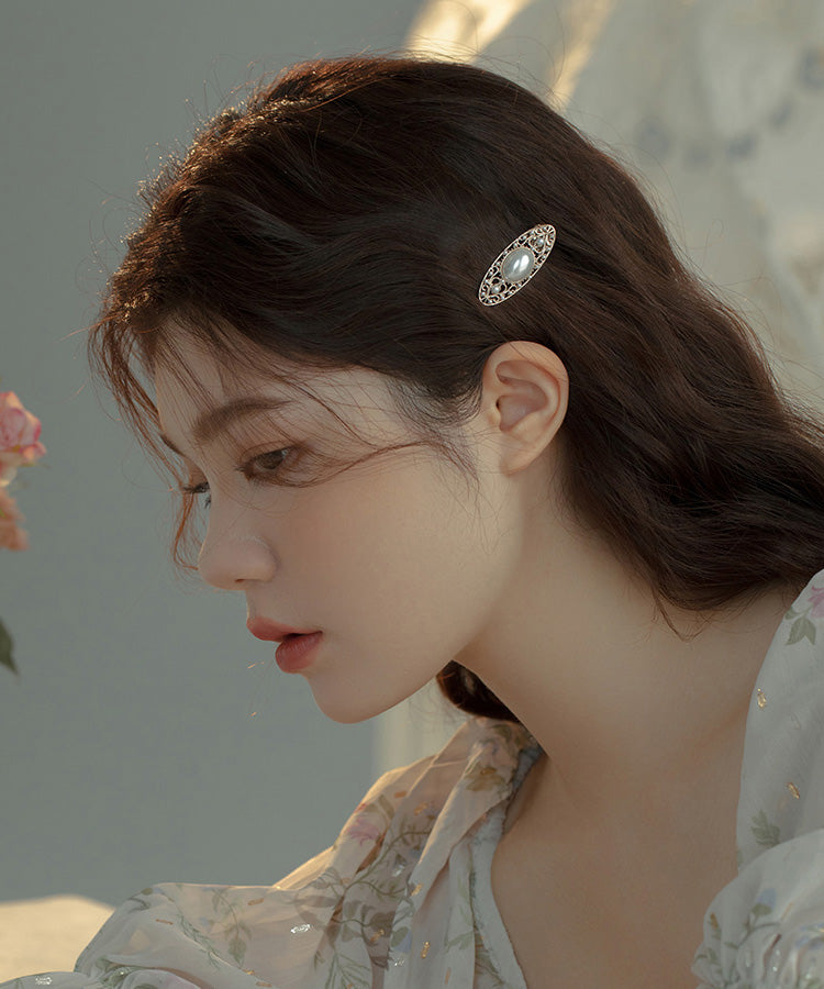 Simple Silk Alloy Pearl Hollow Out Hairpin QJ045