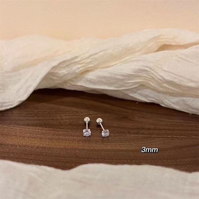 Rhinestone Sterling Silver Barbell Earring (Various Designs)